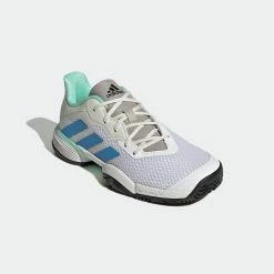 They’ll take charge of every game in these junior adidas tennis shoes. Asymmetrical lacing keeps them firmly locked in while a padded heel pocket further improves the fit. Abrasion-resistant elements on the medial side deal with foot drag during slides. The cushioned EVA midsole ensures that controlling the court has never felt more comfortable.