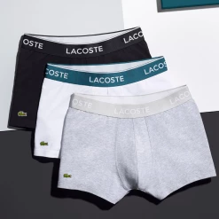 Crafted in comfortable soft stretch cotton which offers breathability and freedom of movement. These everyday essentials feature a waistband with the Lacoste brand name. Pack comprising two pairs of mini crocodile print boxers and one pair of plain-coloured boxers.