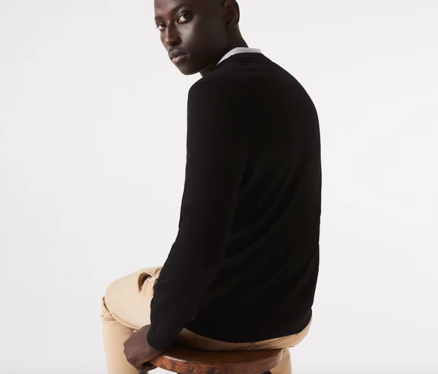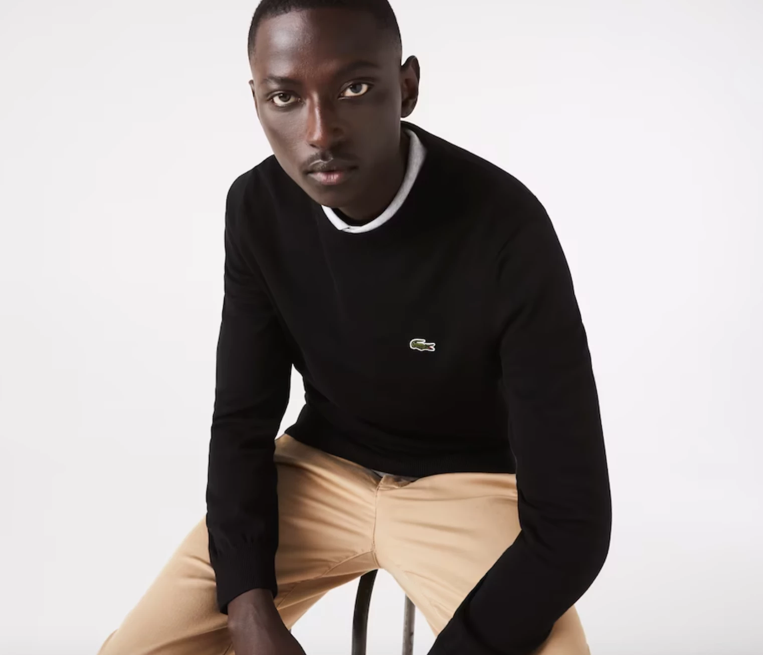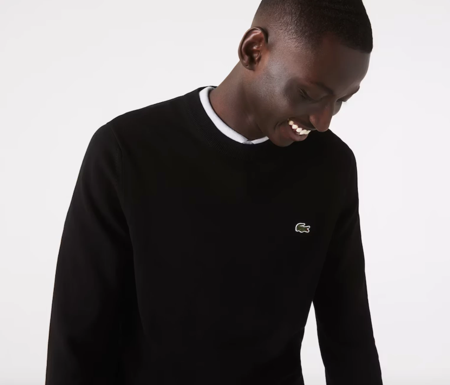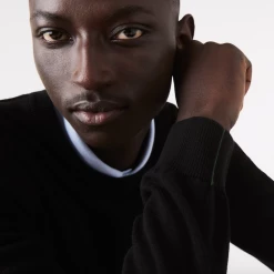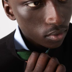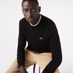 Complete your classic seasonal wardrobe with this crew neck sweater. This eco-responsible organic cotton jersey piece features contrasting details and ribbed finishes, as well as an iconic small green embroidered crocodile on the chest. For a warm and stylish cozy look, wear it with rolled-up chino pants and sneakers from the collection.