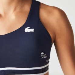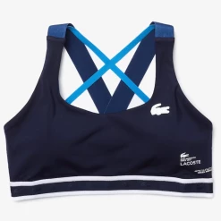 Lacoste Sport presents a new bra offering both support and freedom of movement. Crafted in recycled stretch interlock with a breathable mesh lining, this performance-built essential features ultra-dry properties and removable pads for customizable comfort. Fancy straps and a striped bottom crocodile-adorned band enhance the piece.