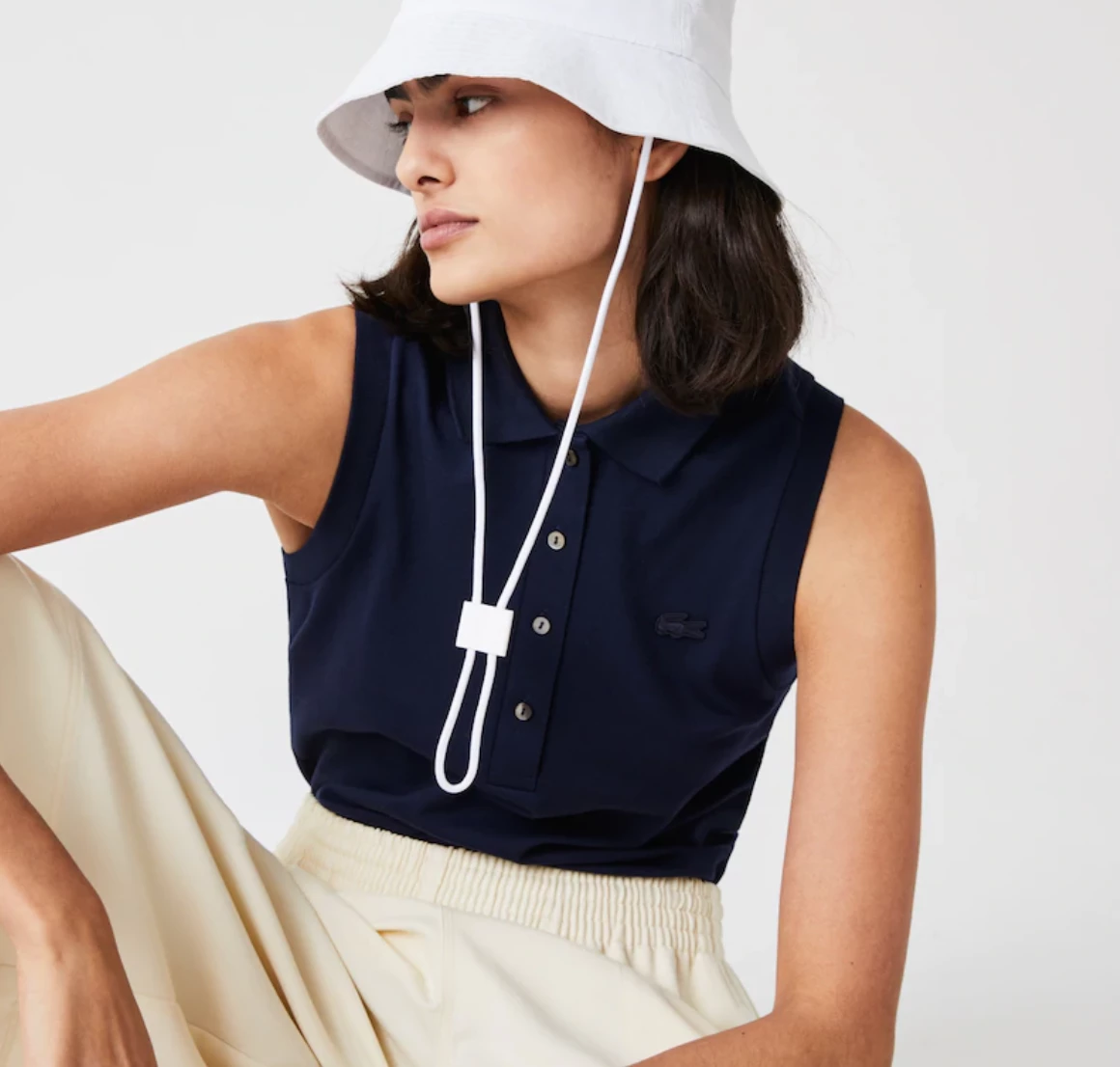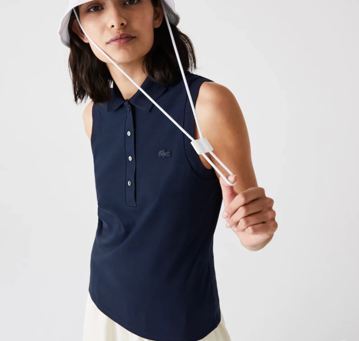 Lighten summer looks in this sleeveless polo top, an effortless yet refined layer that’s distinguished with real mother-of-pearl buttons and a tonal croc logo patch.