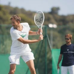 Daniil Medvedev’s T-Fight 305 Isoflex tennis racquet is the most playable of the 18 upright racquets. Developed to bring power and control to good level competitors with a 630cm² headsize and an 18-mount string pattern. But, the new T-Fight Isoflex range has the mission of unleashing the potential of players thanks in particular to 2 innovations from TecniLab: RS Section and Isoflex, generating a specific sensation of dynamic control. “RS Section” represents the fusion of classic “square” and “round” frame sections for specific ergonomics with 5 facets to find the ideal compromise between power and control. Isoflex technology, progressive rigidity all around the frame and associated with each string in order to standardize the sieve to increase tolerance and stability at impact. Weight of 305g for maximum maneuverability and the ability to accelerate the racquet head and specific 18×19 string pattern for a perfect combination of control and spin while managing the frequency of breakage. The best choice for competitors looking for control and playability.